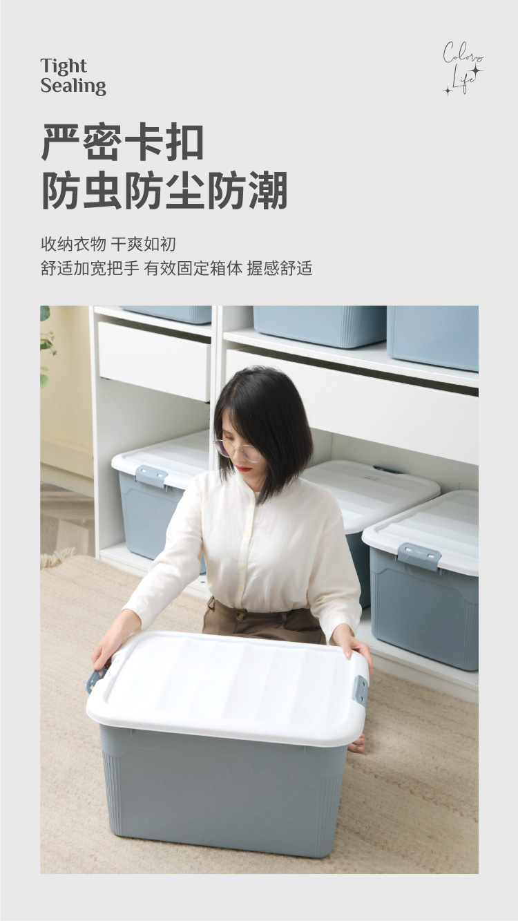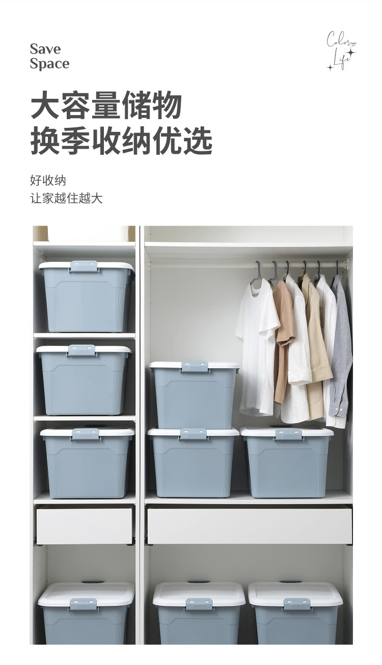 禧天龙 衣物被子收纳箱 透明 65升 1个装