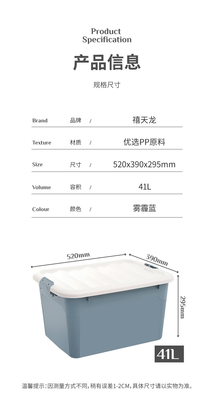 禧天龙 41升加厚塑料收纳箱整理箱 储物箱车载杂物收纳盒