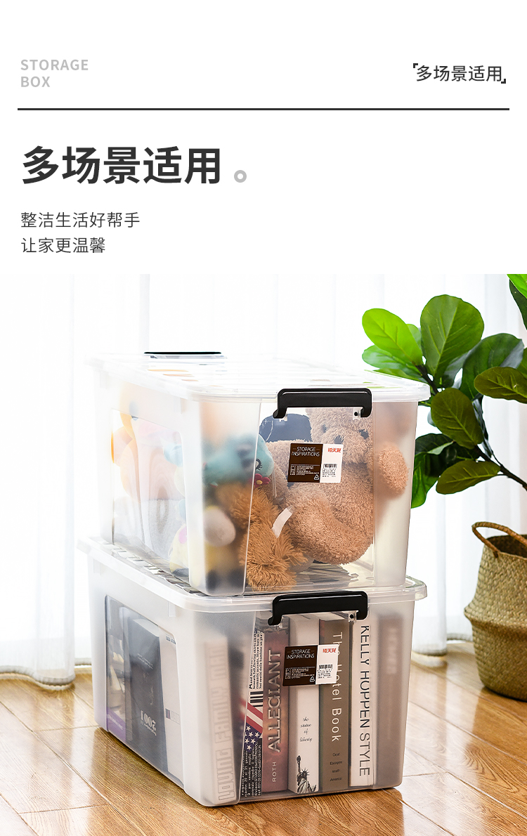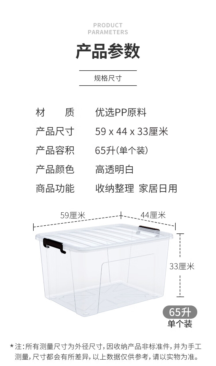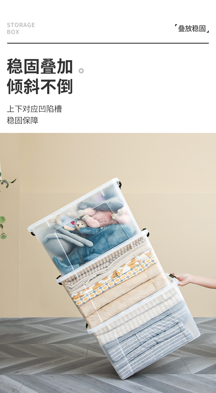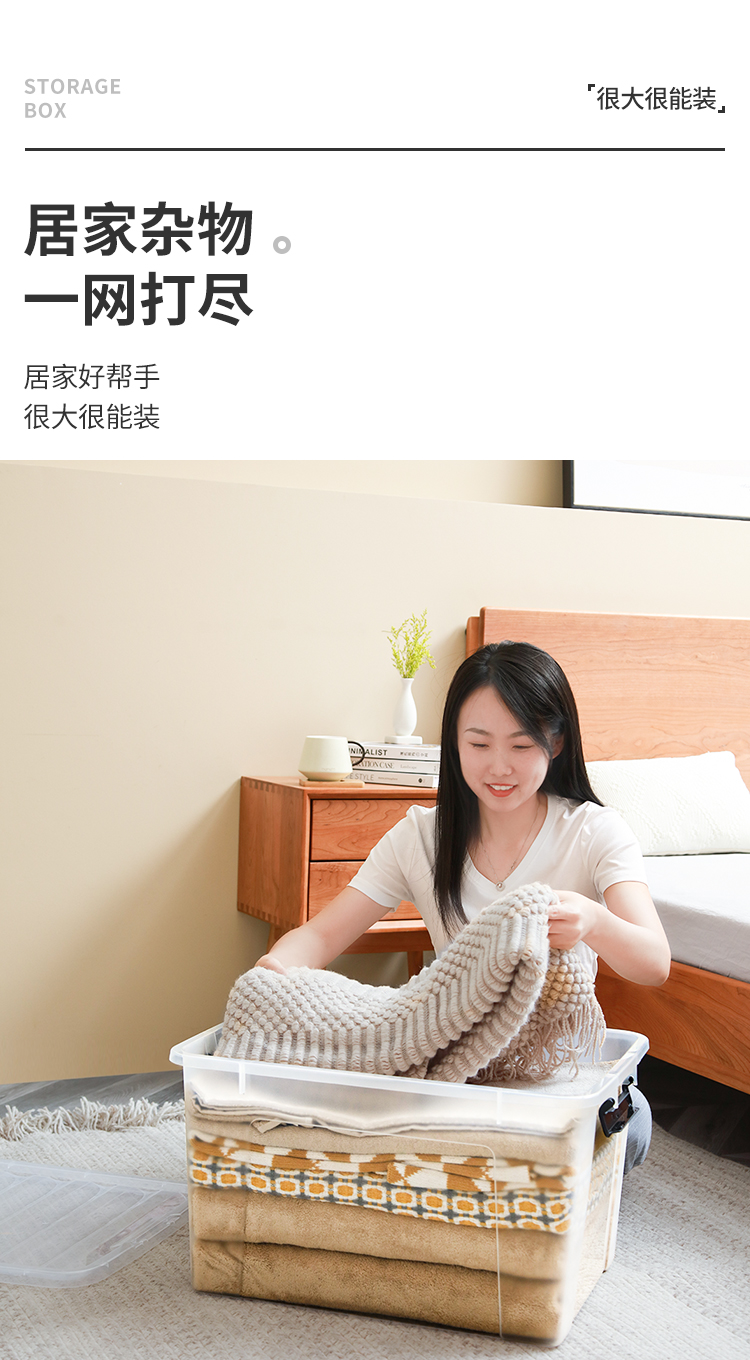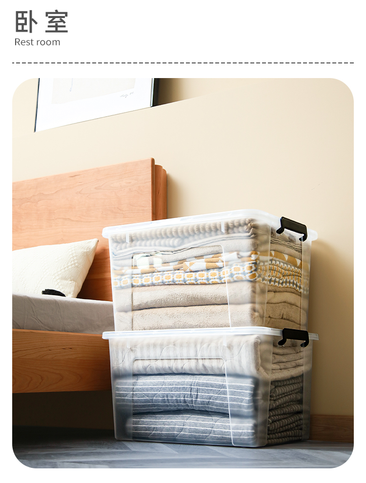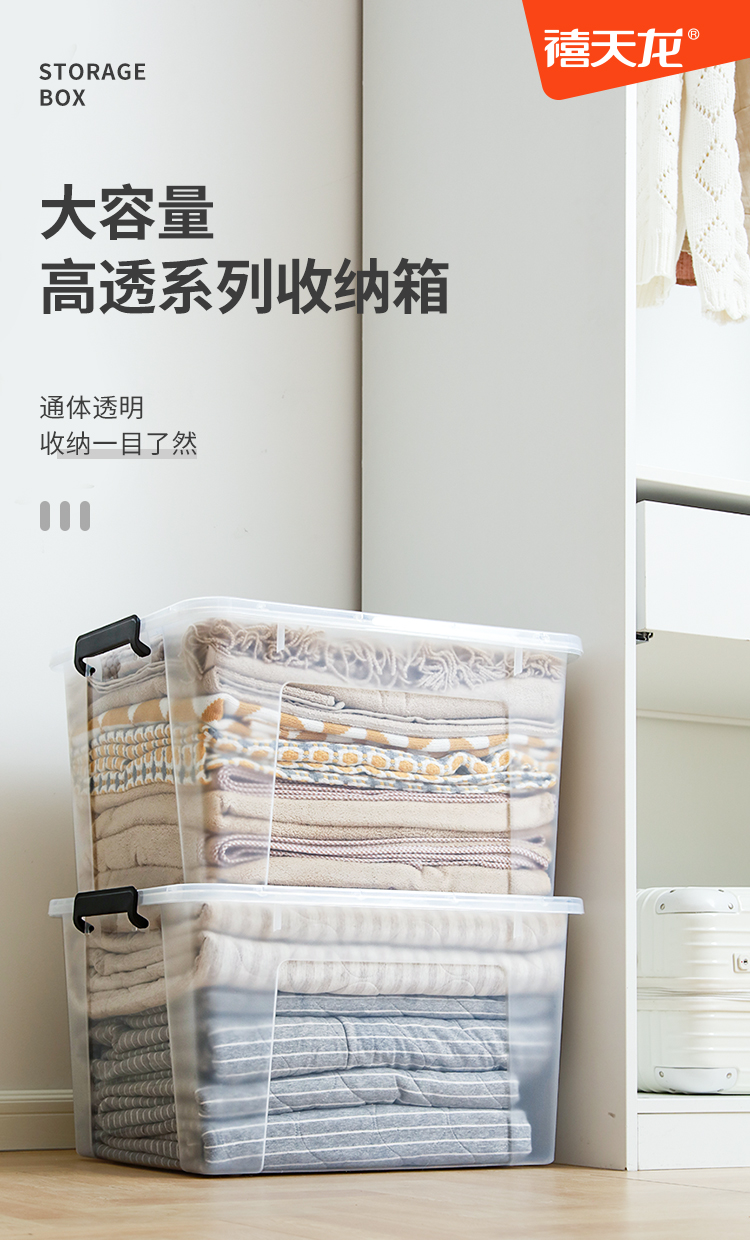 禧天龙 衣物被子收纳箱 透明 65升 1个装