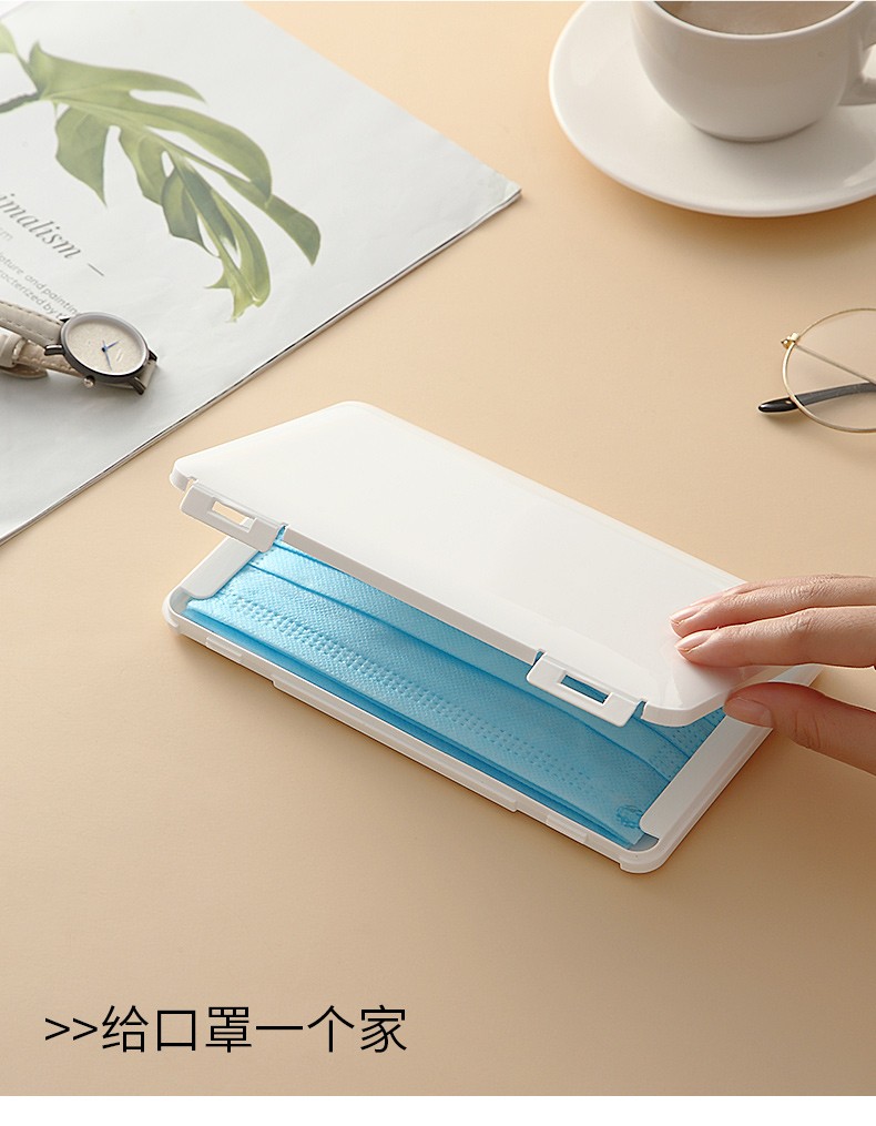 口罩收纳盒存放盒隔离袋学生放防尘罩的盒子便携式随身带暂存夹 白色
