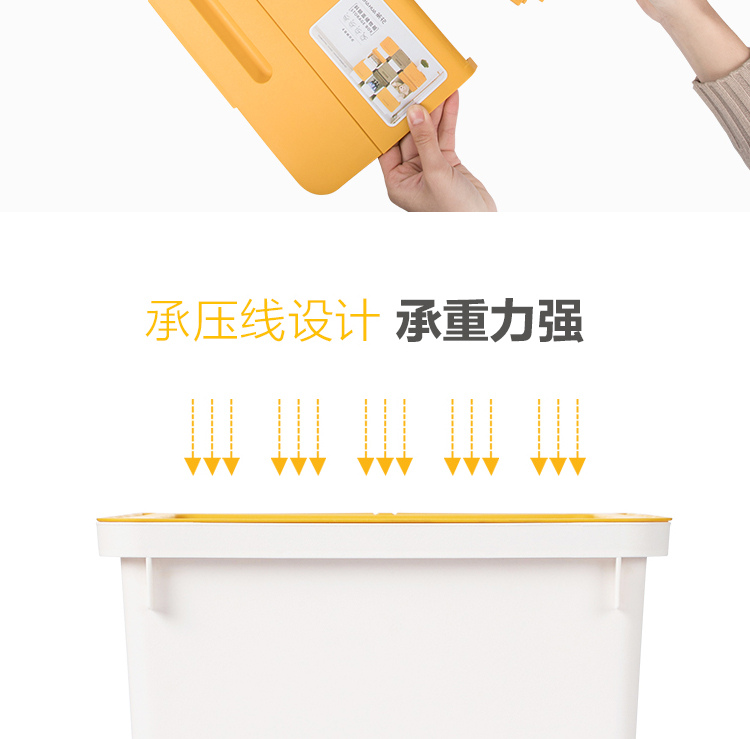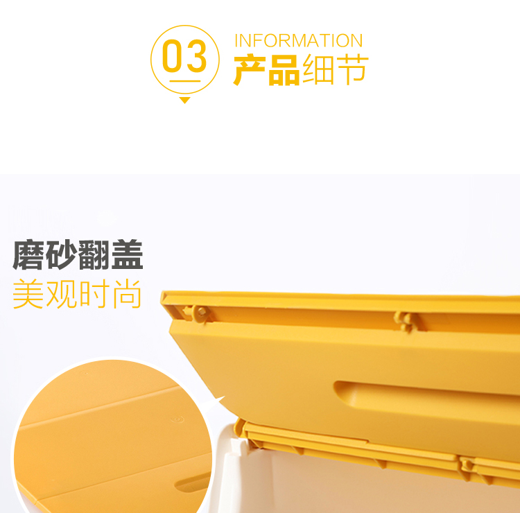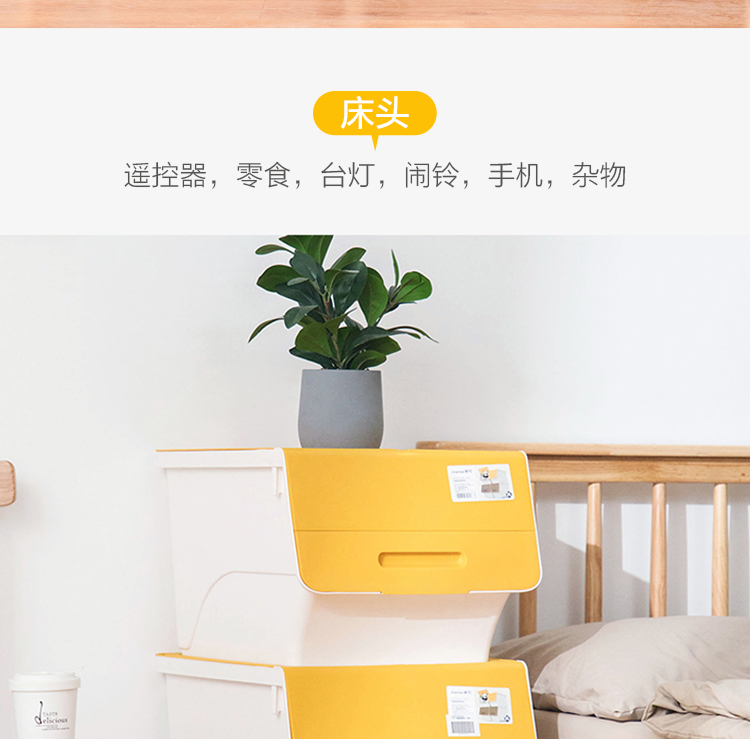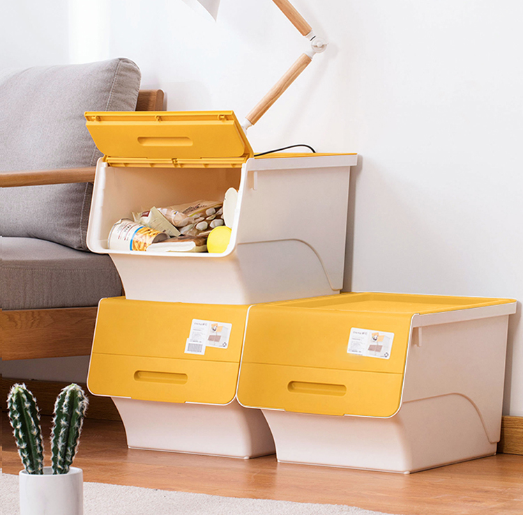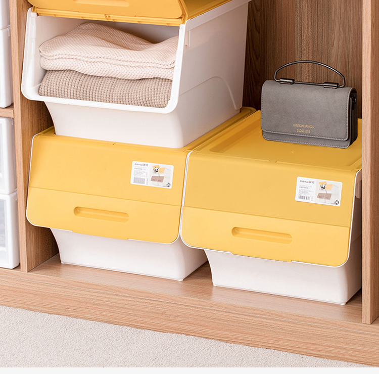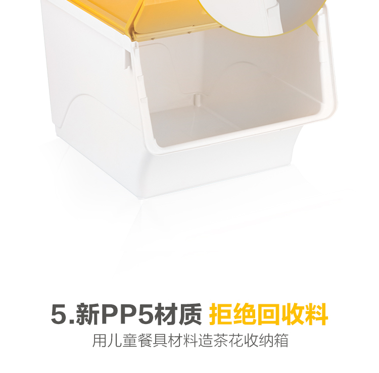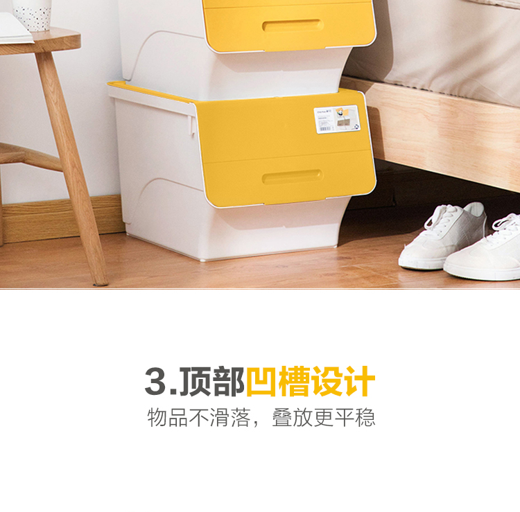茶花 斜口翻盖收纳箱 衣物玩具收纳盒 衣服整理箱子 河马口前开式塑料箱 内衣储物箱34L 黄色
