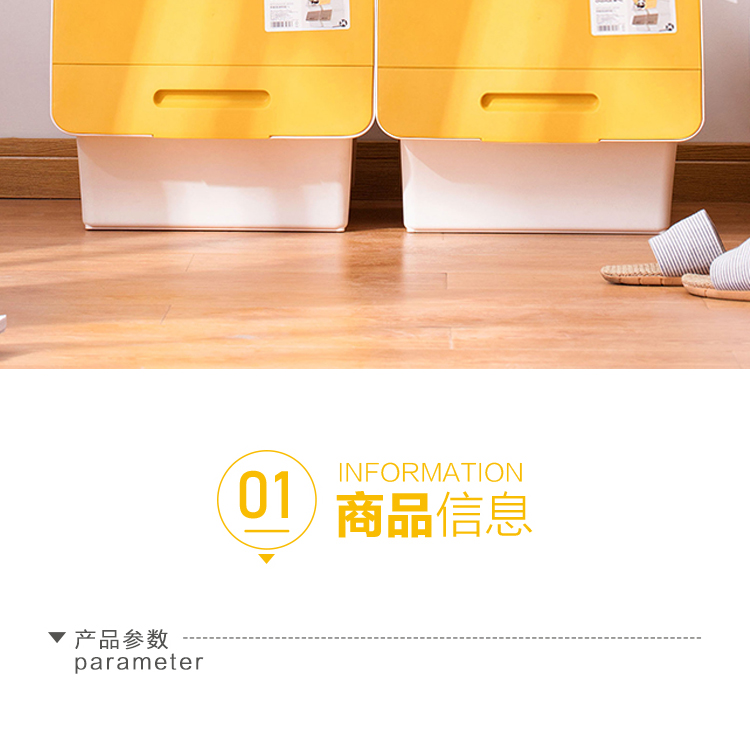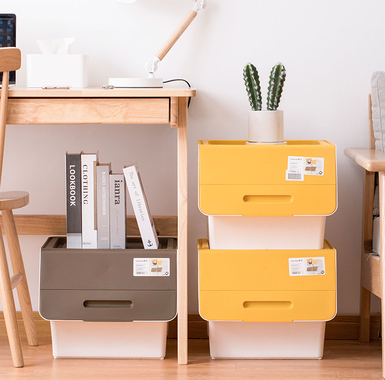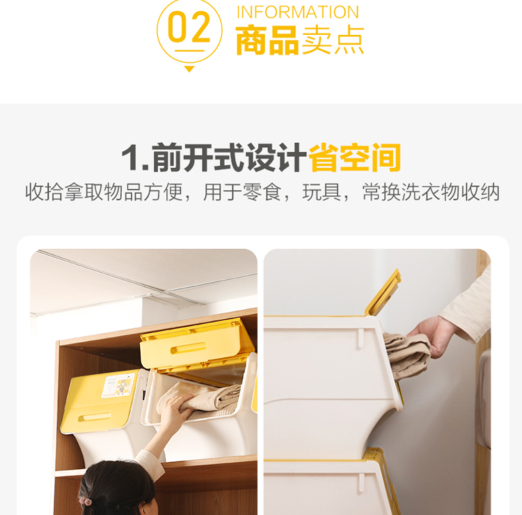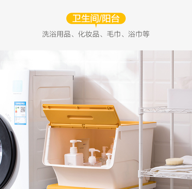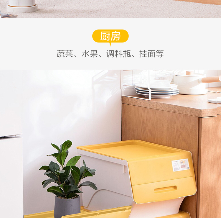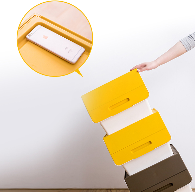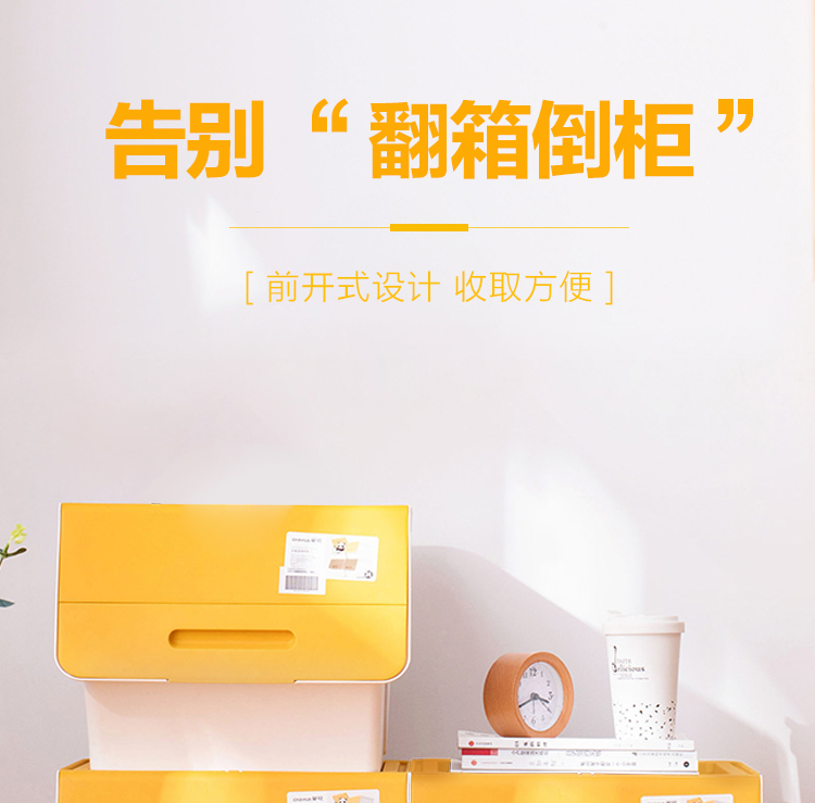 茶花 斜口翻盖收纳箱 衣物玩具收纳盒 衣服整理箱子 河马口前开式塑料箱 内衣储物箱34L 黄色