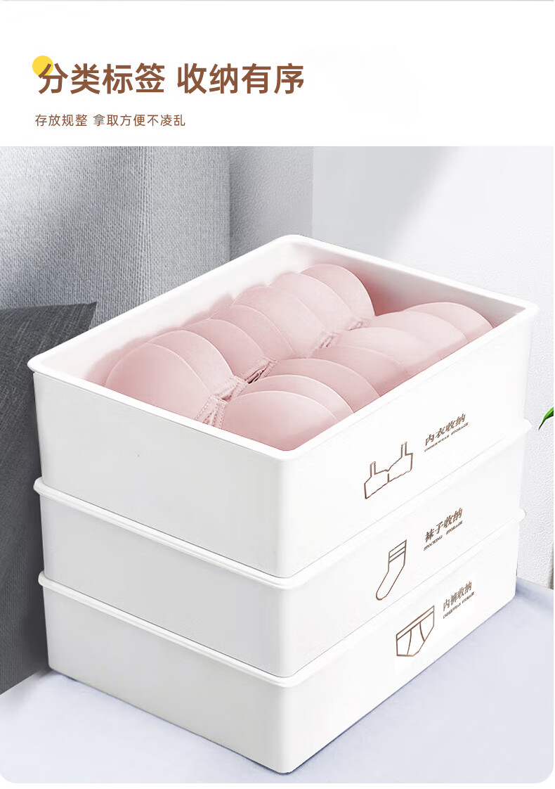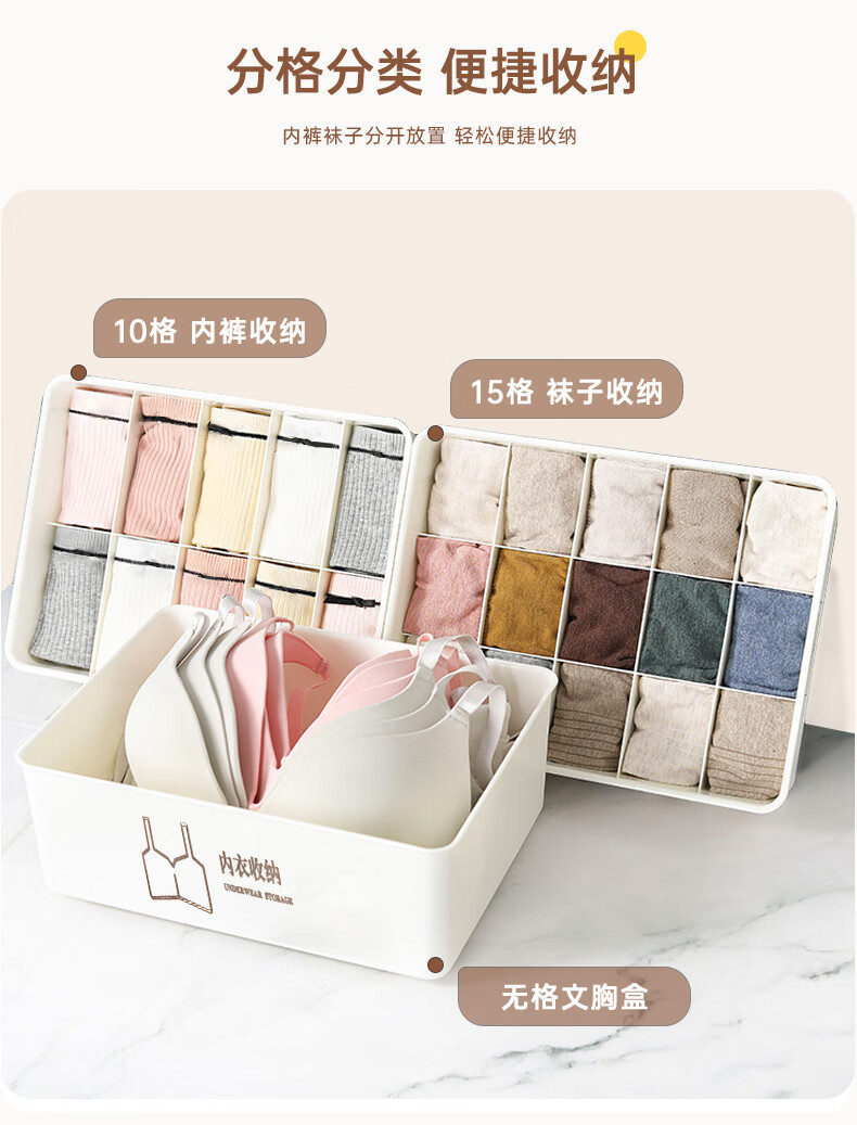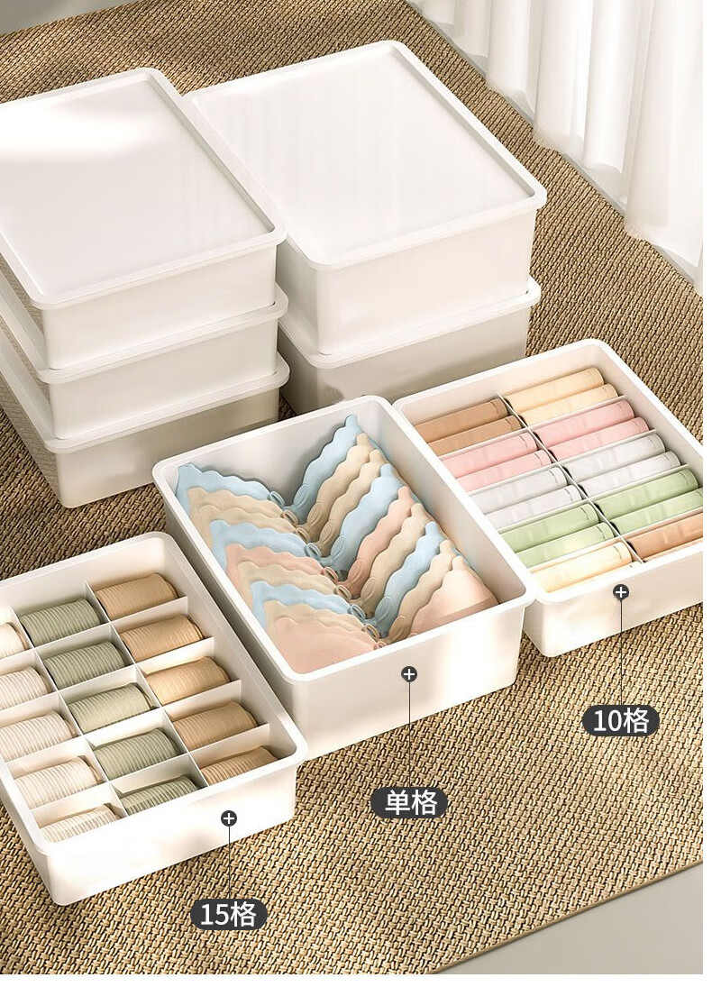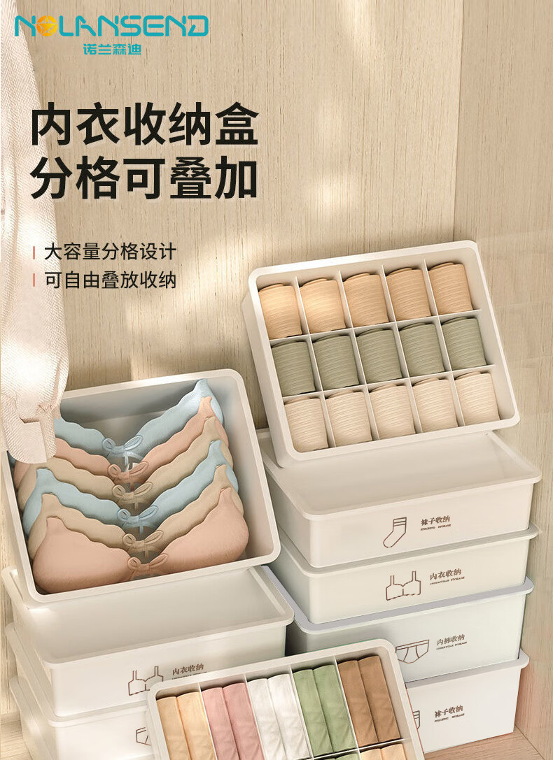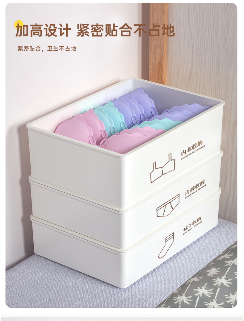 诺兰森迪 内衣收纳盒【三件套】内裤袜子收纳衣柜内衣裤分格文胸收纳整理盒三合一带盖子 月光白