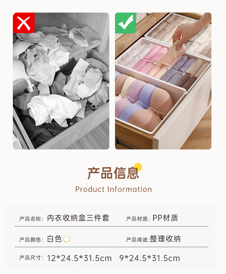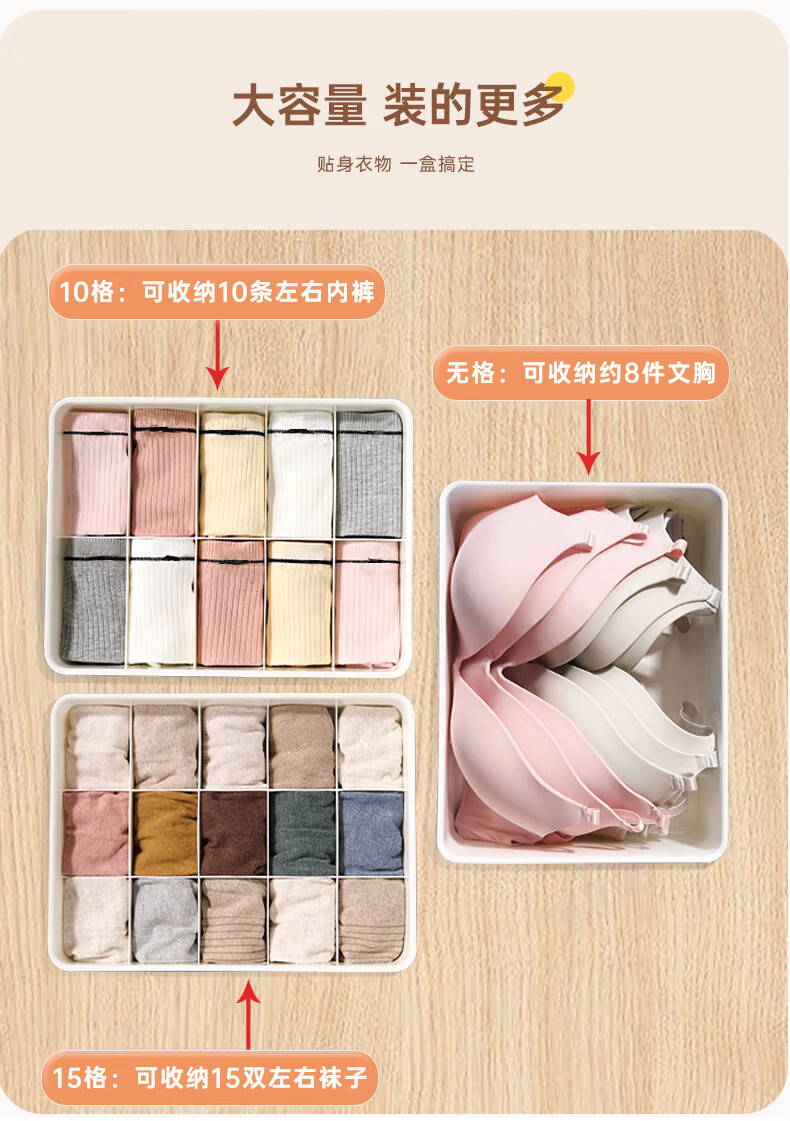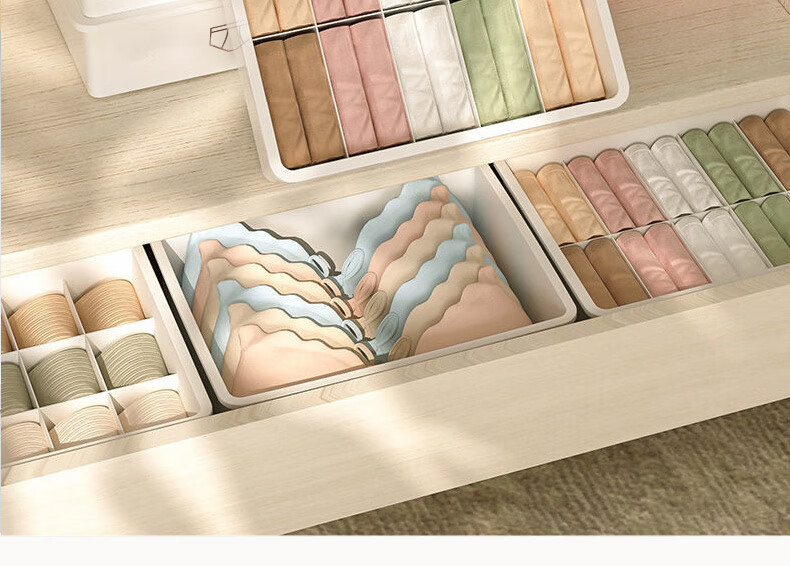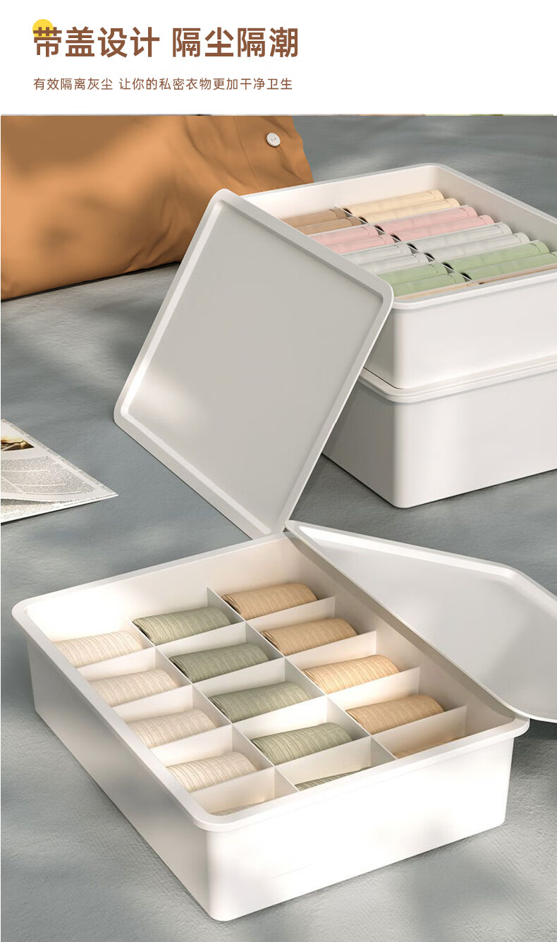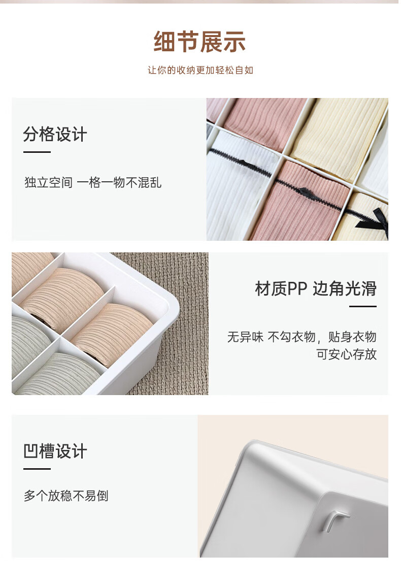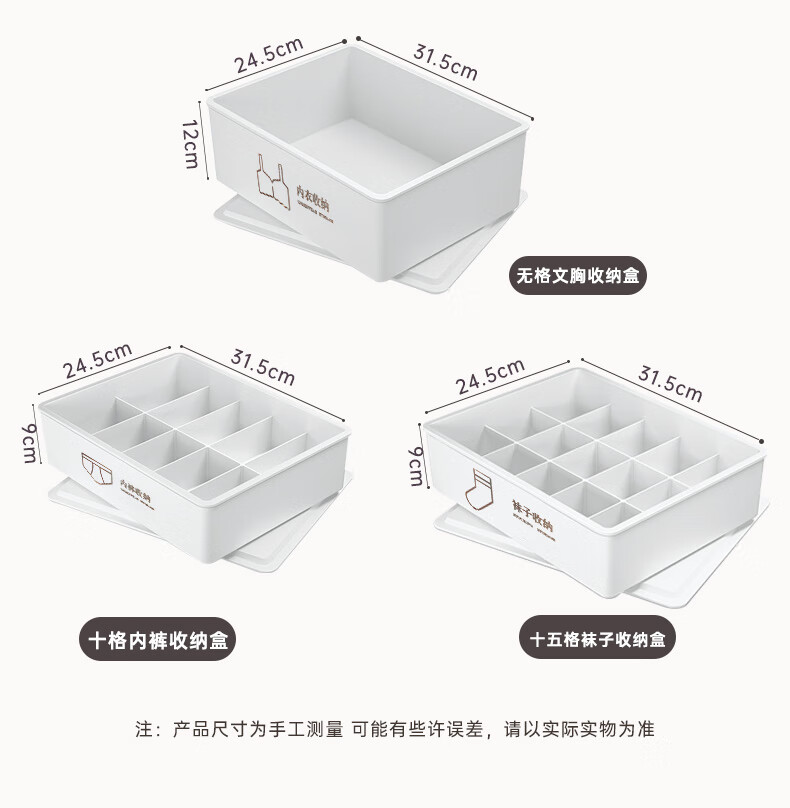 诺兰森迪 内衣收纳盒【三件套】内裤袜子收纳衣柜内衣裤分格文胸收纳整理盒三合一带盖子 月光白