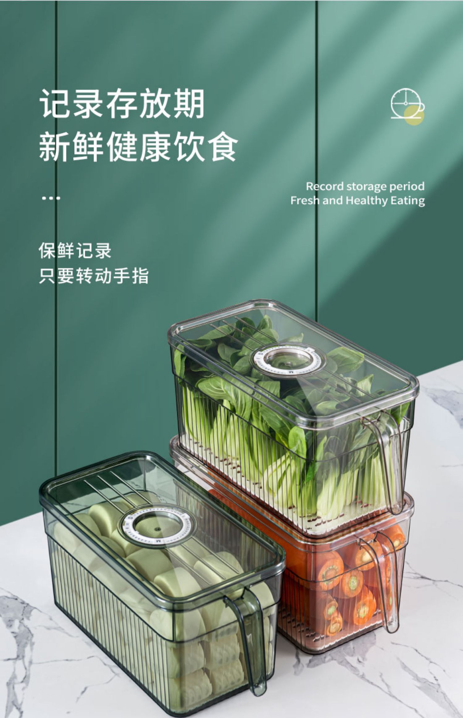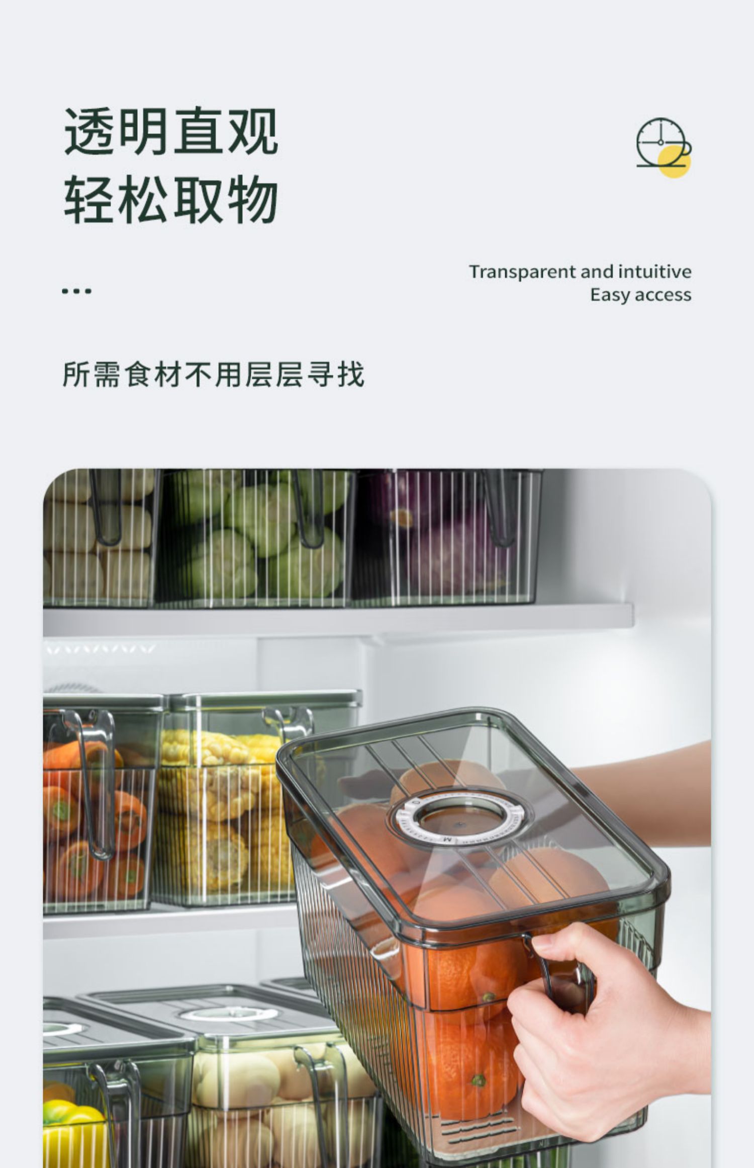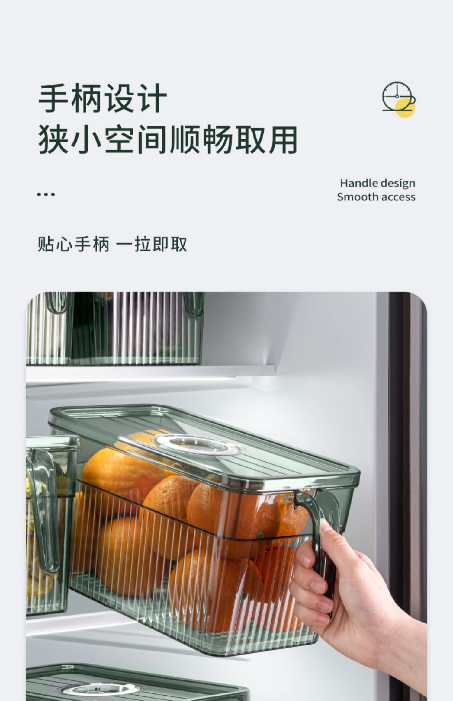 冰箱专用收纳盒带手柄家用厨房蔬菜保鲜盒整理神器透明塑料储物盒