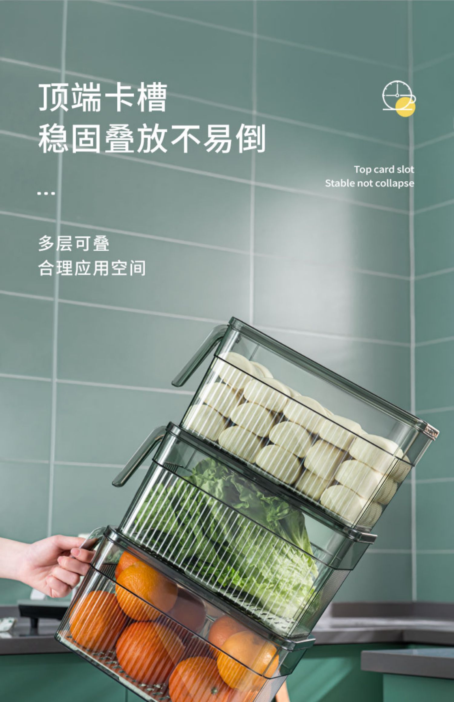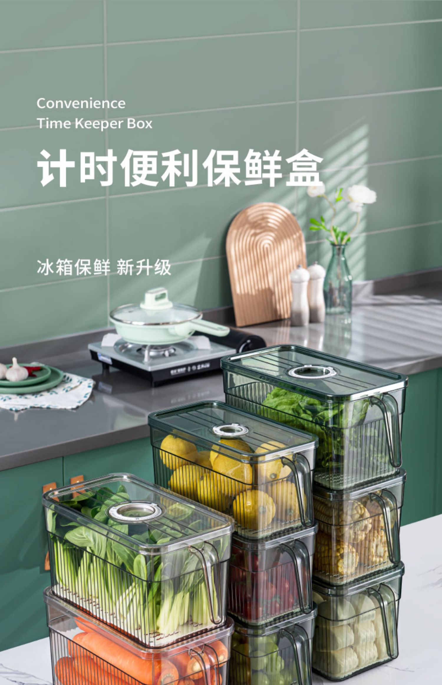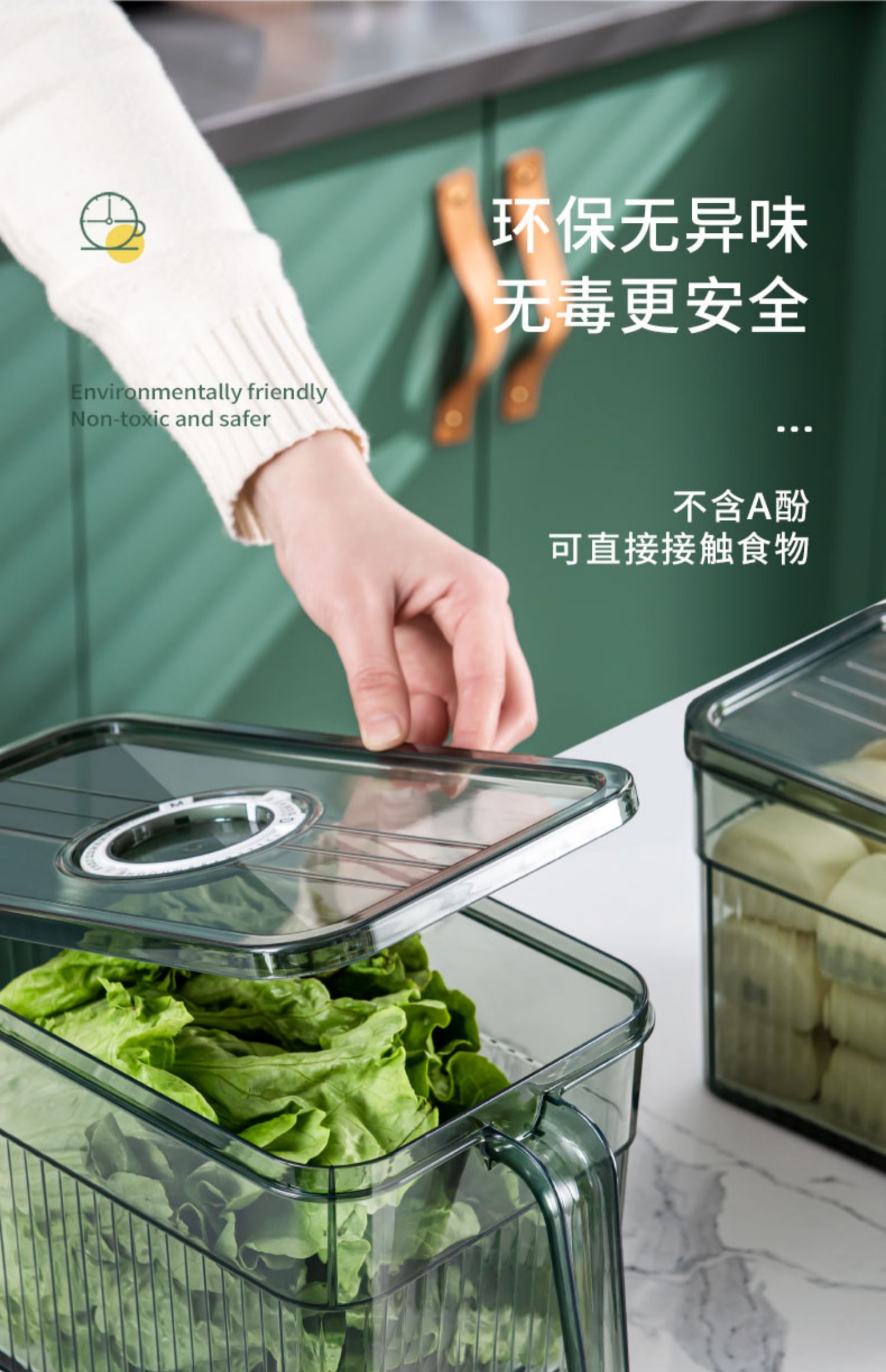 冰箱专用收纳盒带手柄家用厨房蔬菜保鲜盒整理神器透明塑料储物盒