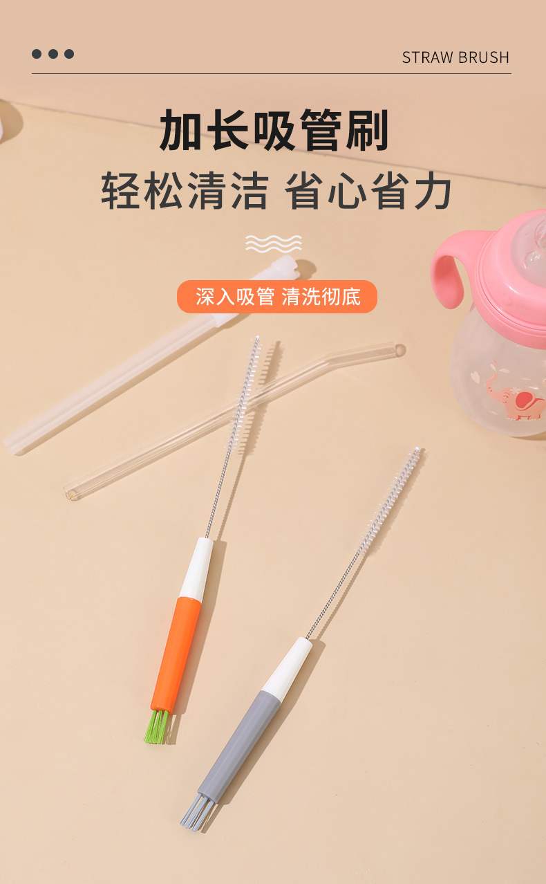 多功能吸管刷清洁奶瓶嘴茶壶嘴清洁刷家用保温杯杯盖缝隙清洗神器