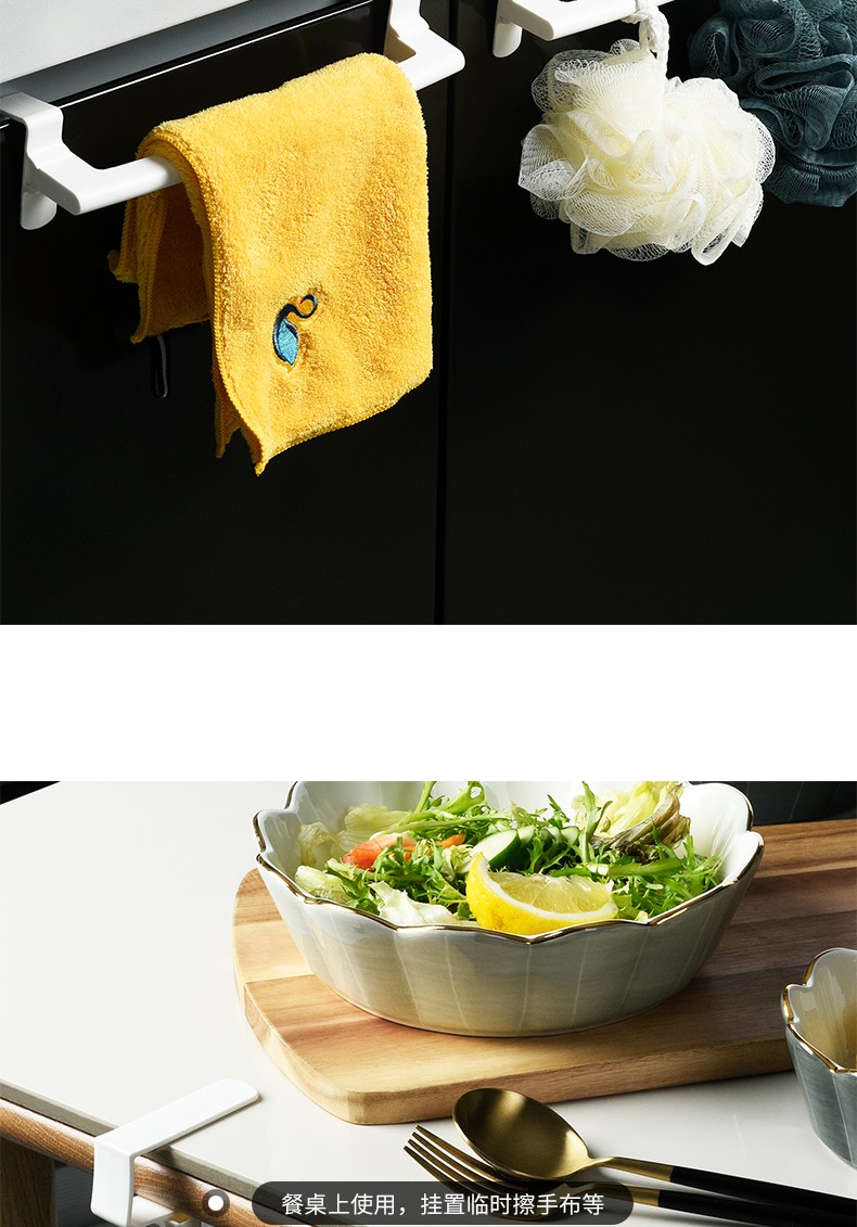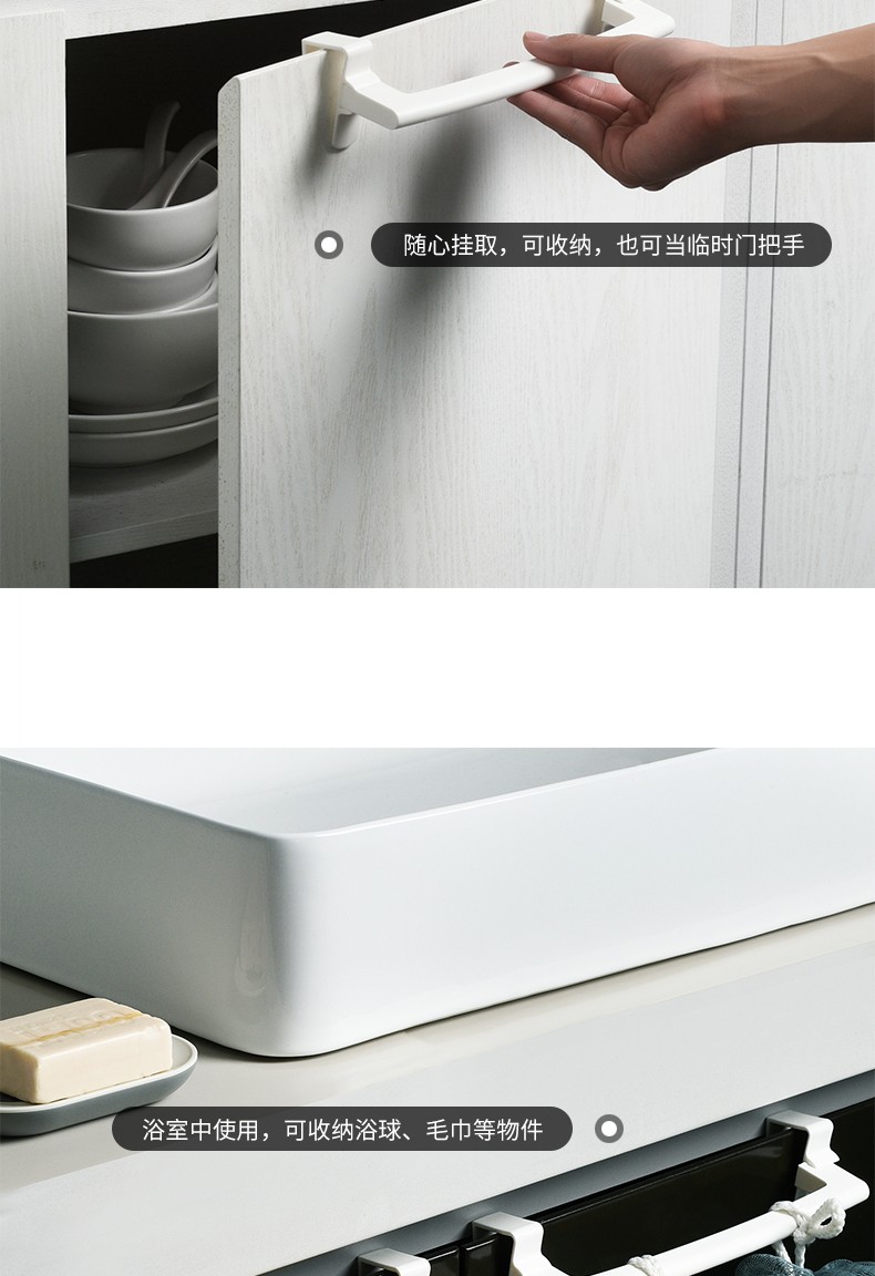 2个装厨房单杆门毛巾架 多用途背式无痕免钉橱柜抹布挂架杂物挂日式无痕厨卫橱柜门毛巾挂架毛巾架