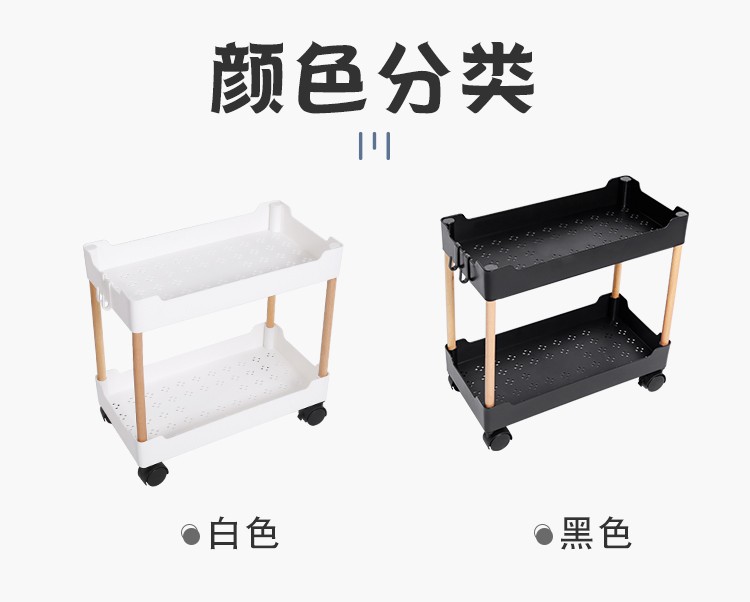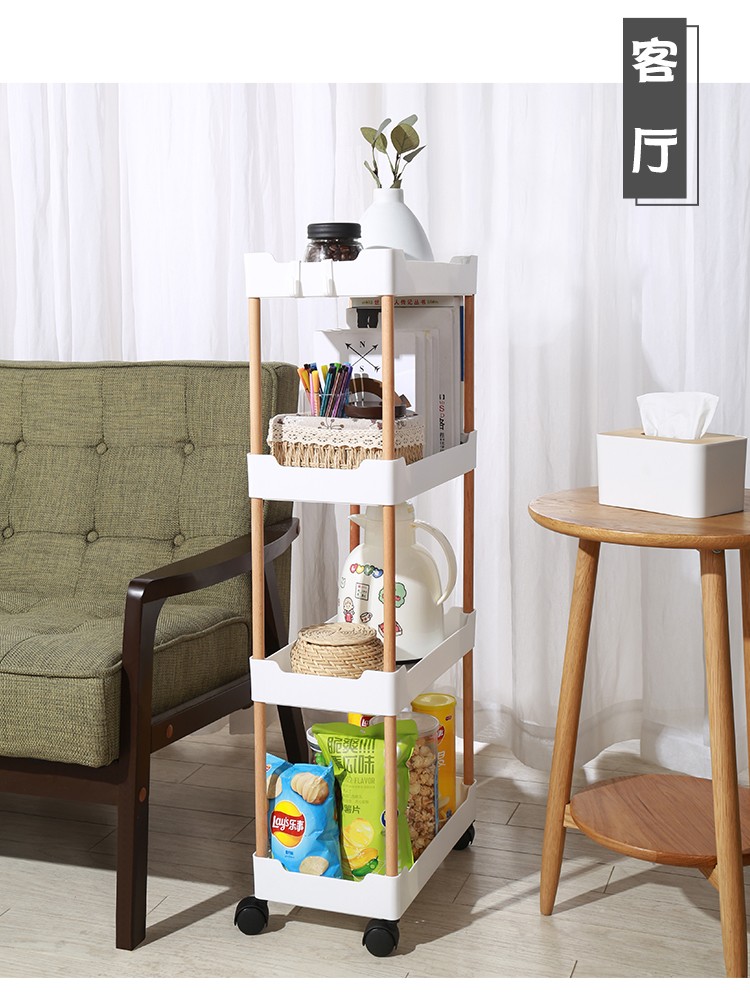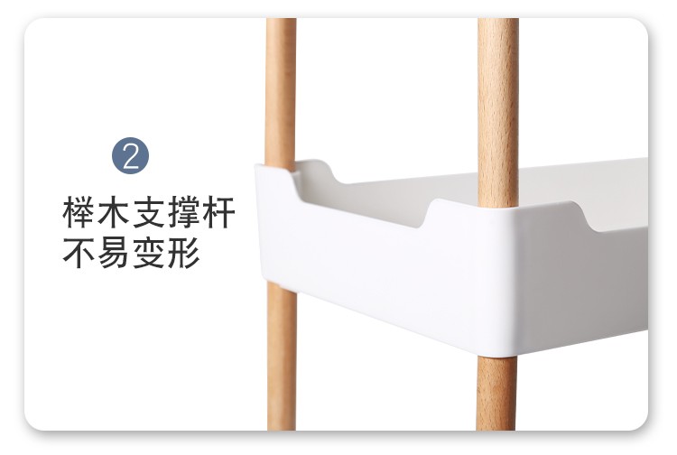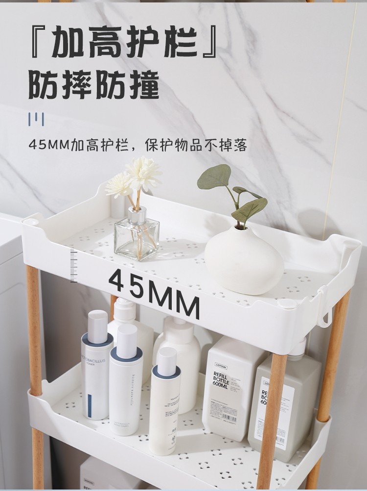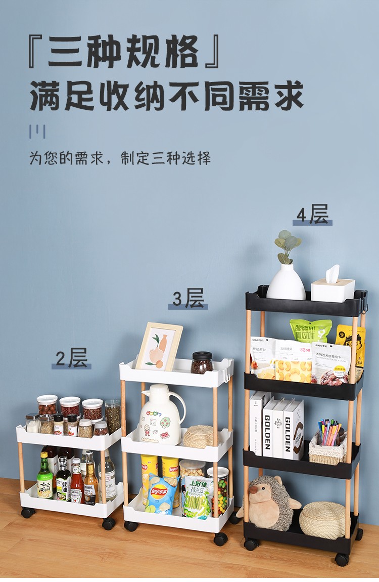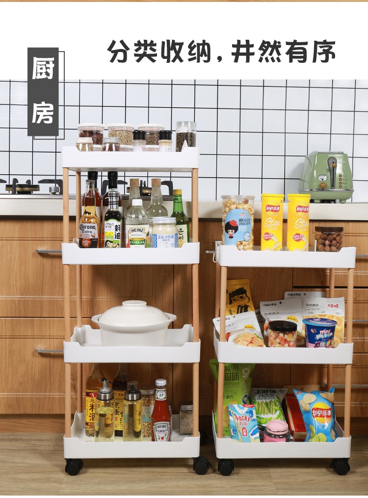 3层置物架木支架款厨房置物架浴室镂空整理架落地多层储物架子可移动小推车带轮收纳架