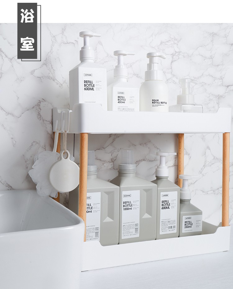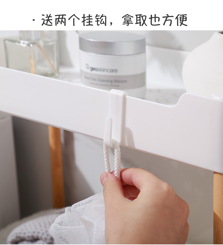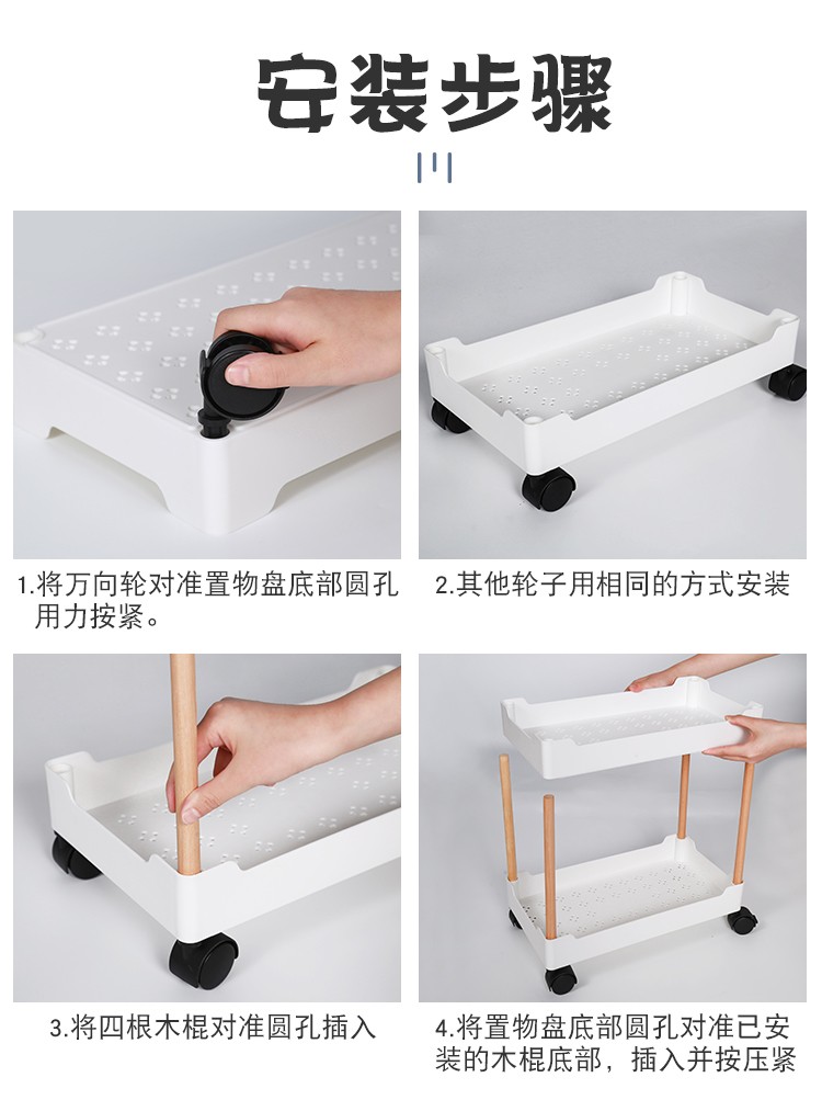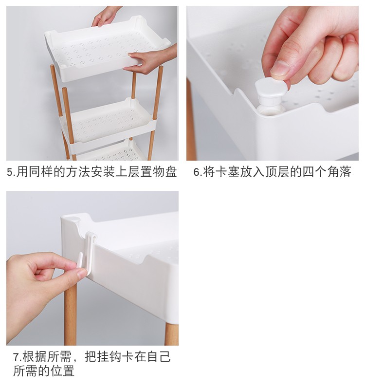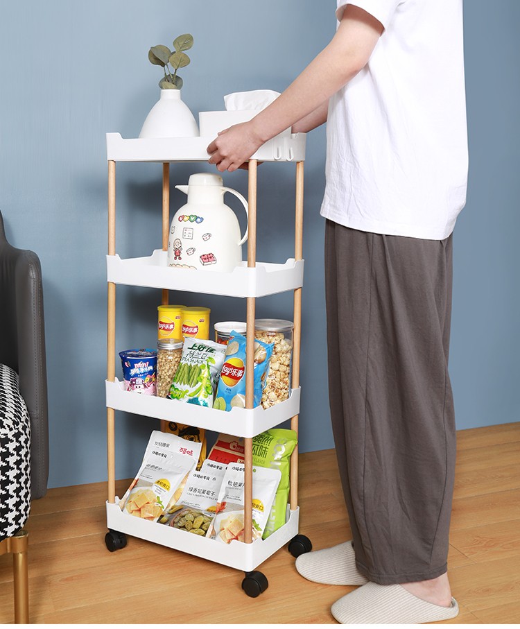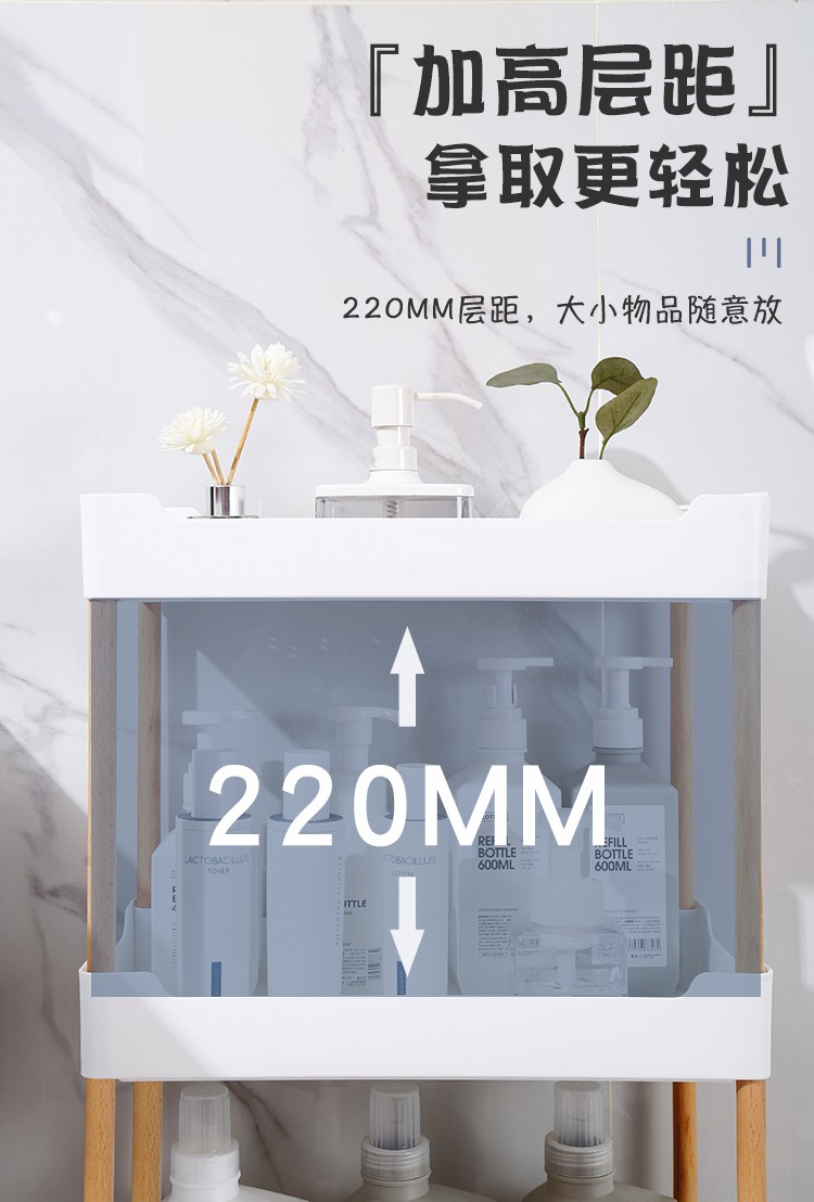 3层置物架木支架款厨房置物架浴室镂空整理架落地多层储物架子可移动小推车带轮收纳架