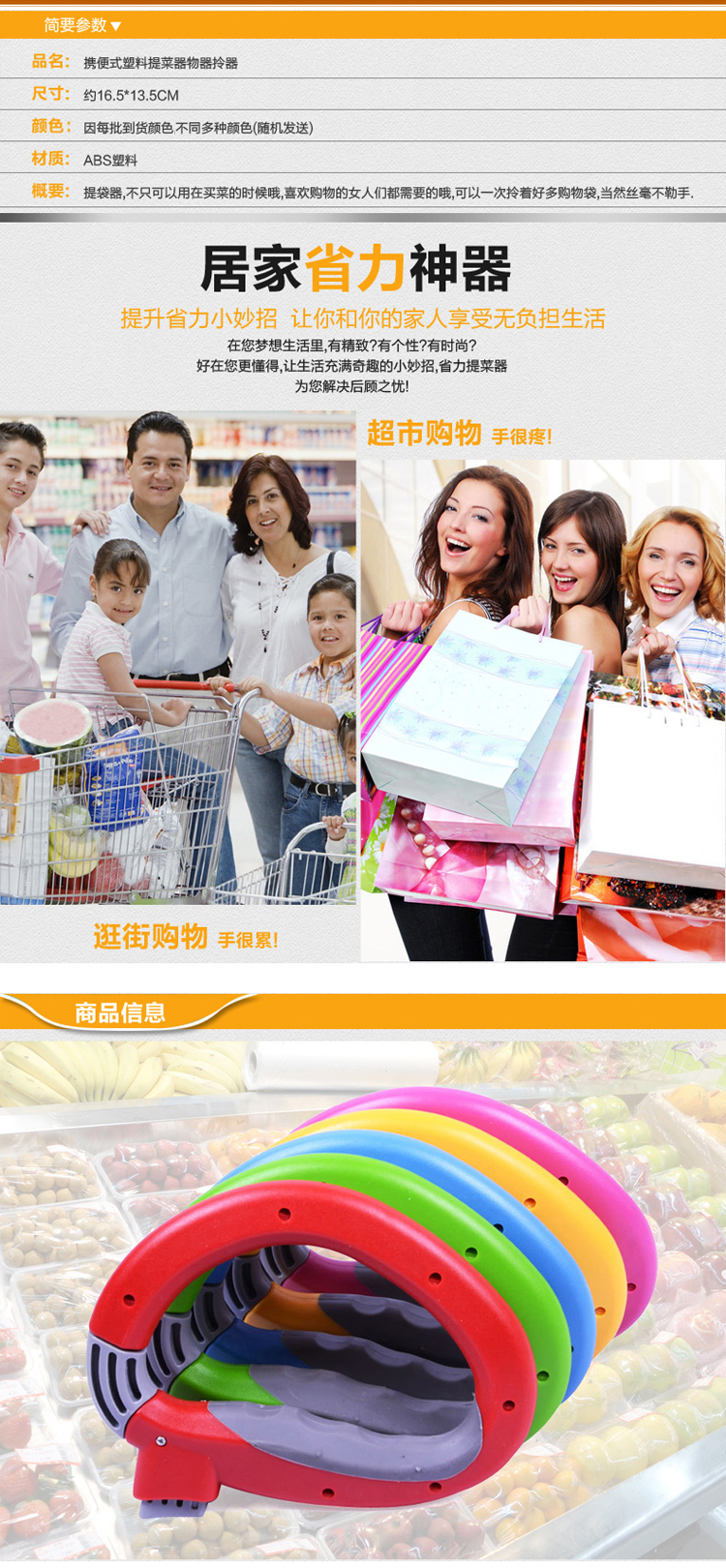 D型提菜器提物器提菜提物省力便携器拎菜器提袋器D型省力提菜器携便式塑料不勒手提物器拎菜器提袋器 颜色随机