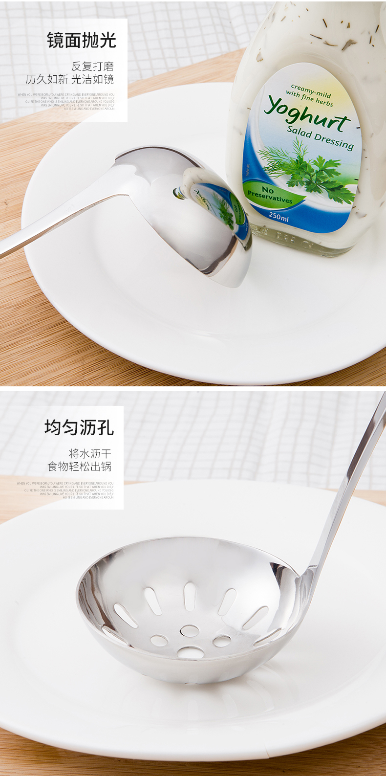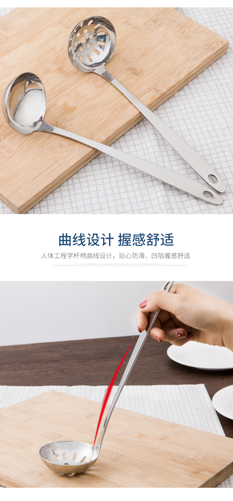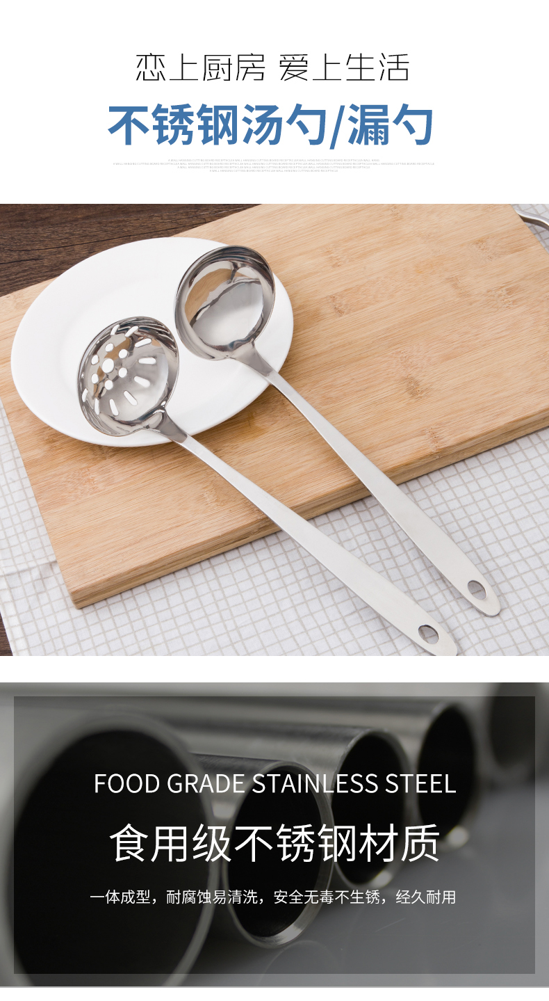 家居不锈钢汤勺加厚汤匙火锅勺长柄汤壳大汤匙全柄汤壳汤漏 漏勺款