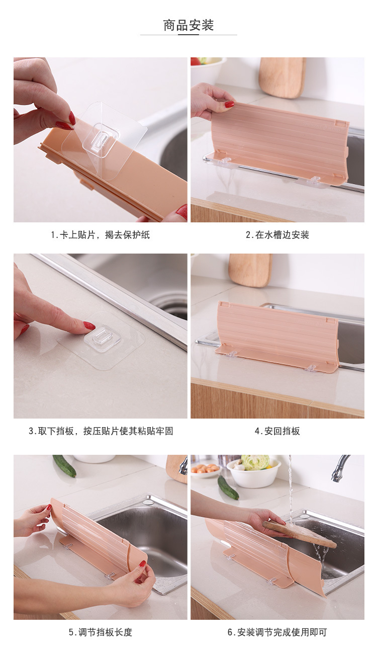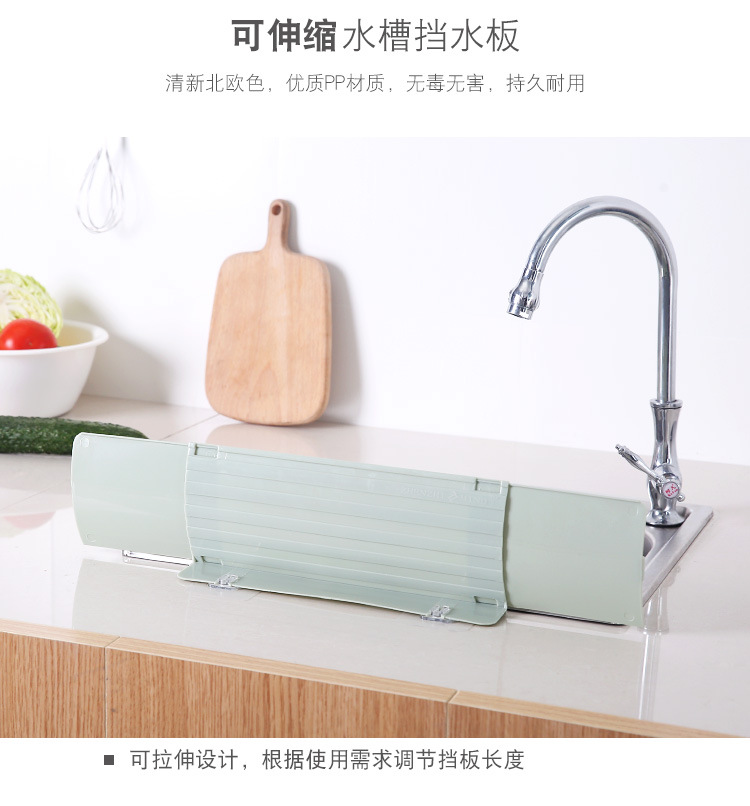 可伸缩厨房水槽挡水板家用挡油隔水池台面洗手台吸盘式防溅水板